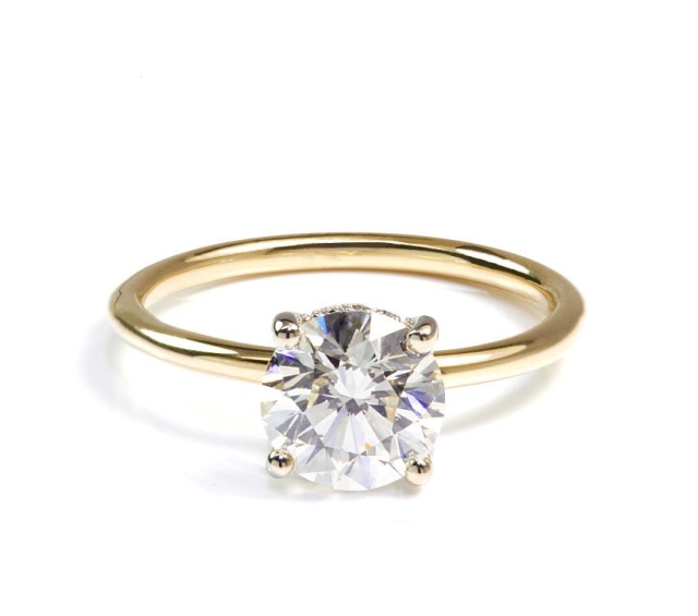 Channel-set princess-cut diamonds, offer the ideal brilliance and fire to accent your choice of center stone. 1/2 carat total diamond weight.