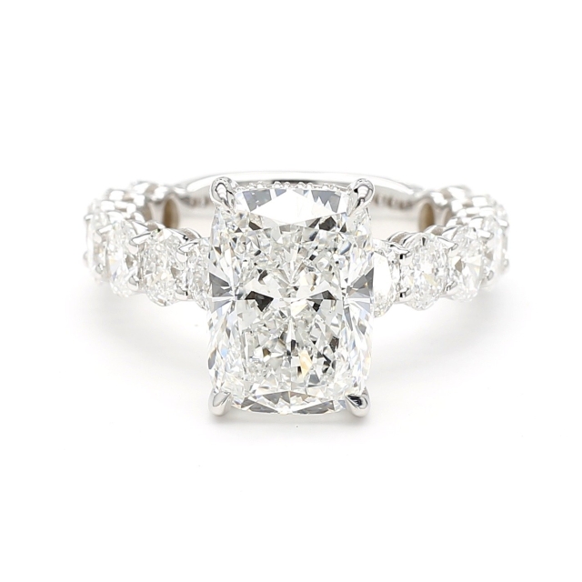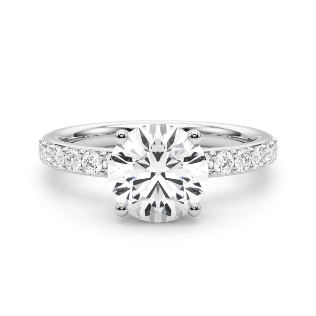 This signature infinity twist diamond engagement ring features an intriguing design with pave-set diamonds to compliment your choice of center stone.