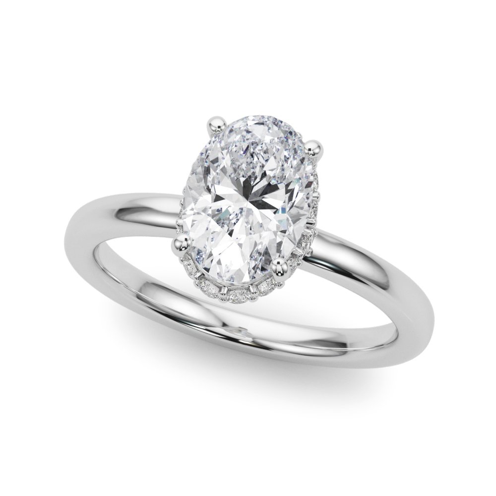 The Iris Diamond Engagement Ring features a stunning oval center stone surrounded by a delicate halo of round brilliant diamonds, creating a soft, radiant frame that enhances the stone’s natural brilliance. Set on a sleek, high-polish band, this timeless design combines classic elegance with refined simplicity. The minimal metal around the center allows maximum light to enter the diamond, offering exceptional sparkle from every angle. Perfect for those who love graceful sophistication, the Iris ring is a modern heirloom with enduring beauty.