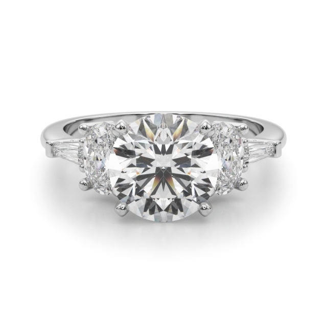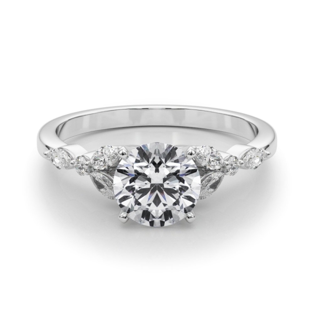 Reina diamond engagement ring. The Reina diamond engagement ring features gorgeous round brilliant diamonds 3/4 way down the band. Each stone is set with french cut prongs for a clean and smooth look. Available in 14k or 18k White, Yellow, Rose Gold or Platinum. Complete this ring with your choice of center stone.