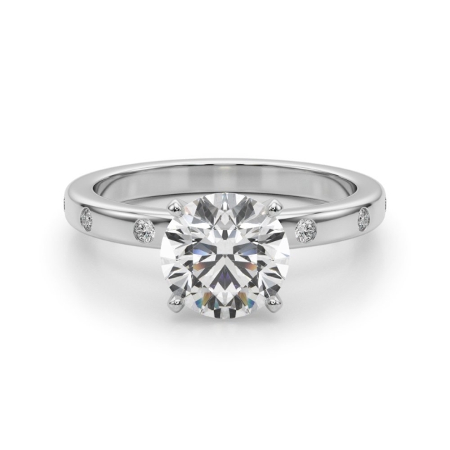 This diamond engagement ring setting features pave-set diamonds along three-rows on each side. Over 1/2 of a carat total diamond weight offers the ideal side-stone brilliance to accent your choice of center diamond.