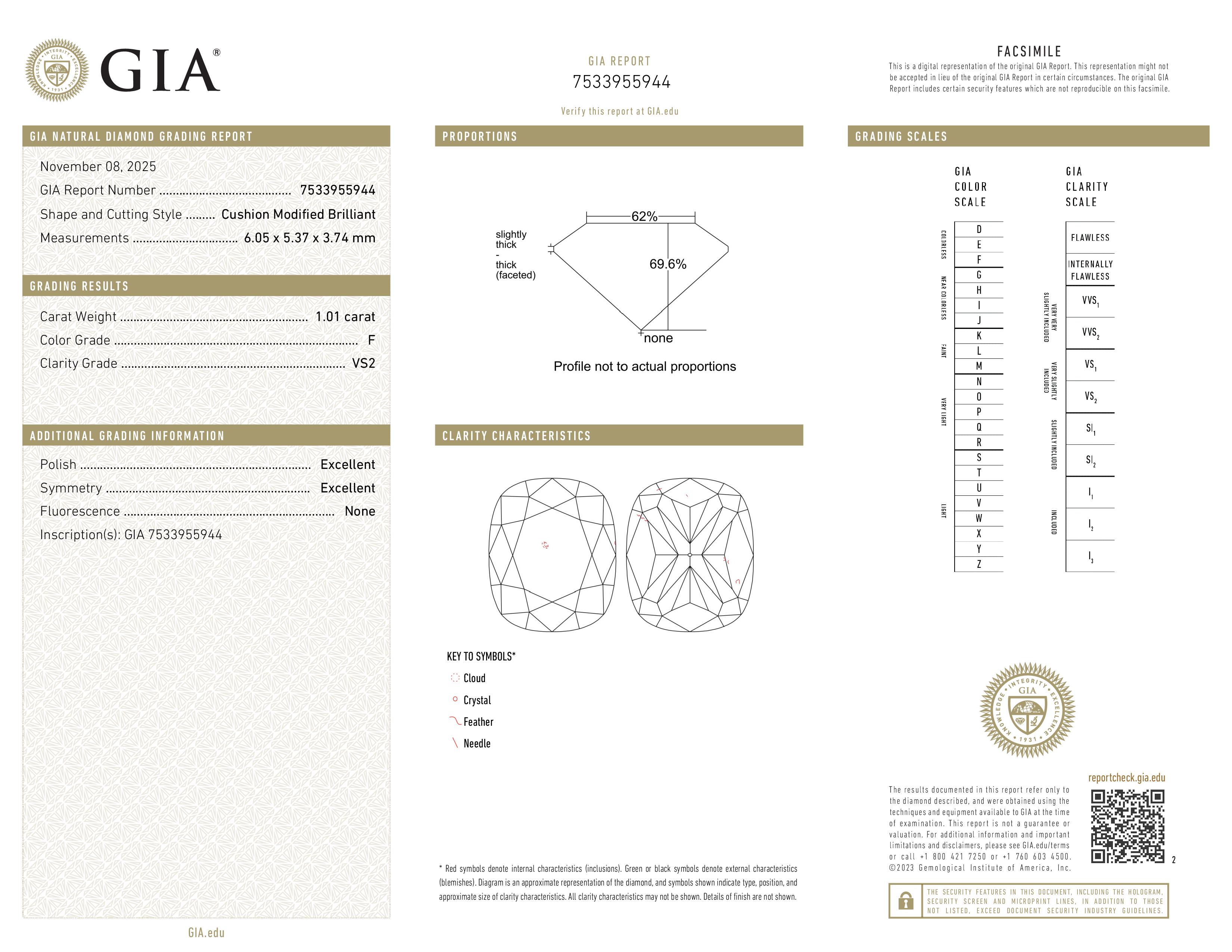 (Excellent) This diamond is cut to the highest standards determined by grading laboratories. Reflecting virtually all the light that enters, this diamond was cut to maximize brilliance and sparkle. Excellent cuts are exceptionally fine and rare and have ideal proportions and finish characteristics.