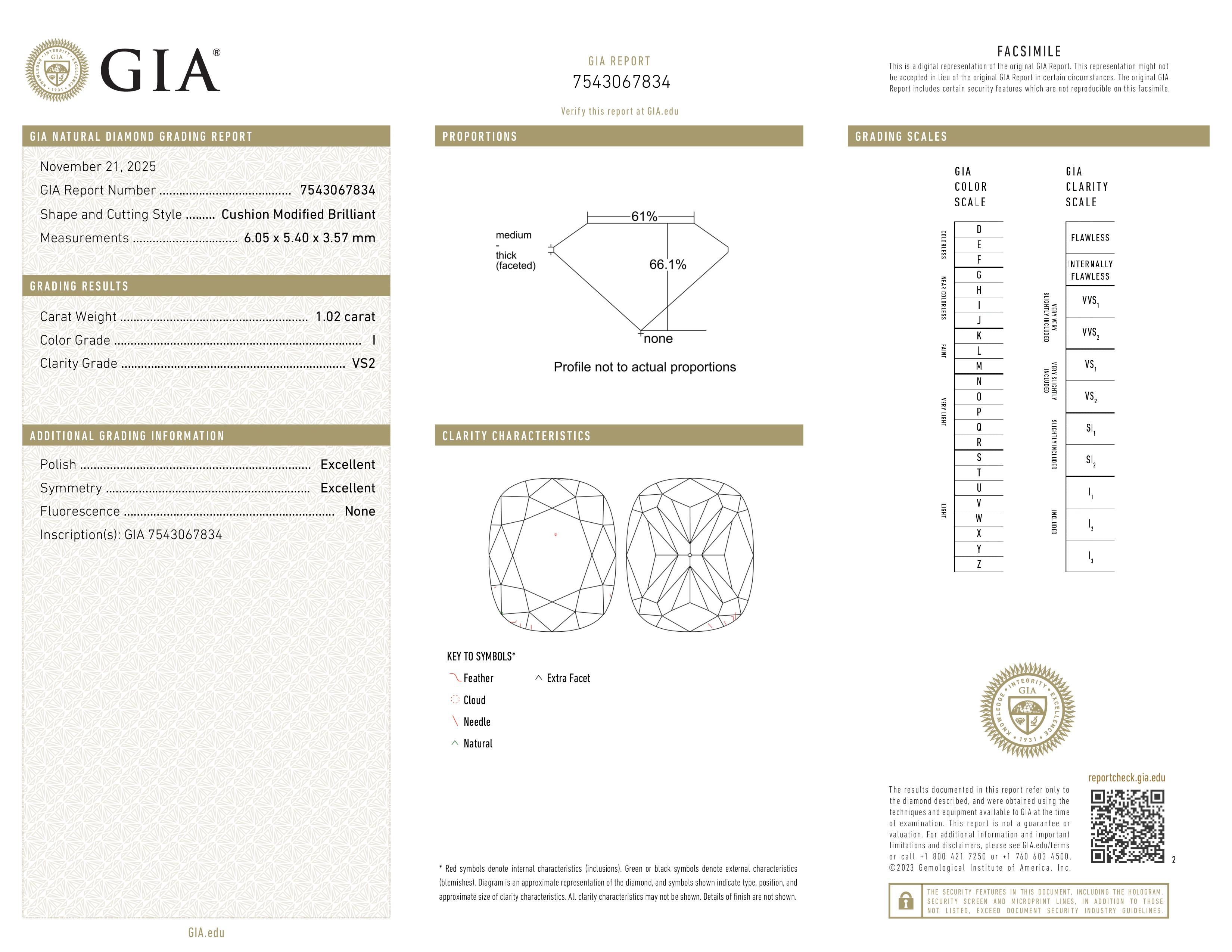 (Excellent) This diamond is cut to the highest standards determined by grading laboratories. Reflecting virtually all the light that enters, this diamond was cut to maximize brilliance and sparkle. Excellent cuts are exceptionally fine and rare and have ideal proportions and finish characteristics.