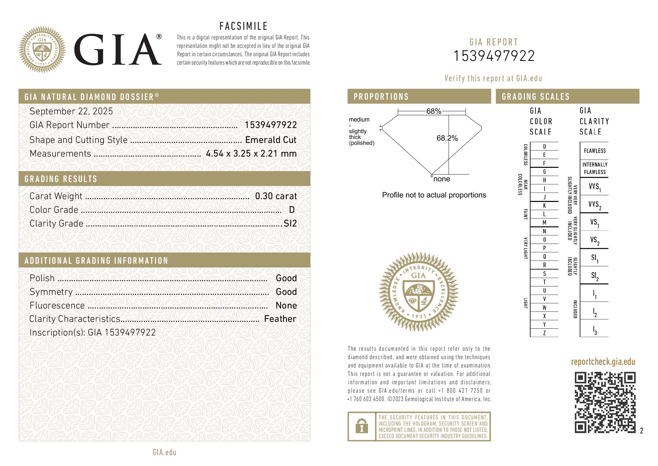 (SI2) Some inclusions are detectable under 10x magnification, even to the untrained eye. However, when the diamond is set in jewelry, these inclusions are not usually visible to the naked eye. The SI2 graded diamonds are less expensive then higher clarity graded and therefore offer exceptional value for those that want to stay within budget and get a larger diamond. If you're unsure and want our opinion, just let us know and one of our gemologists will review it for you.