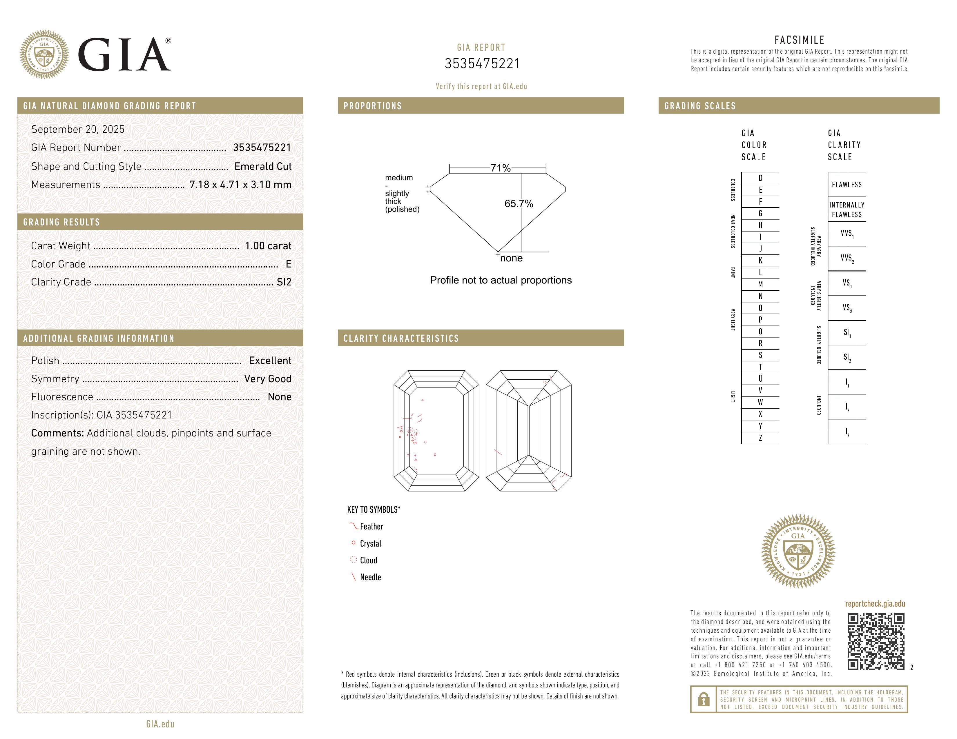 (SI2) Some inclusions are detectable under 10x magnification, even to the untrained eye. However, when the diamond is set in jewelry, these inclusions are not usually visible to the naked eye. The SI2 graded diamonds are less expensive then higher clarity graded and therefore offer exceptional value for those that want to stay within budget and get a larger diamond. If you're unsure and want our opinion, just let us know and one of our gemologists will review it for you.