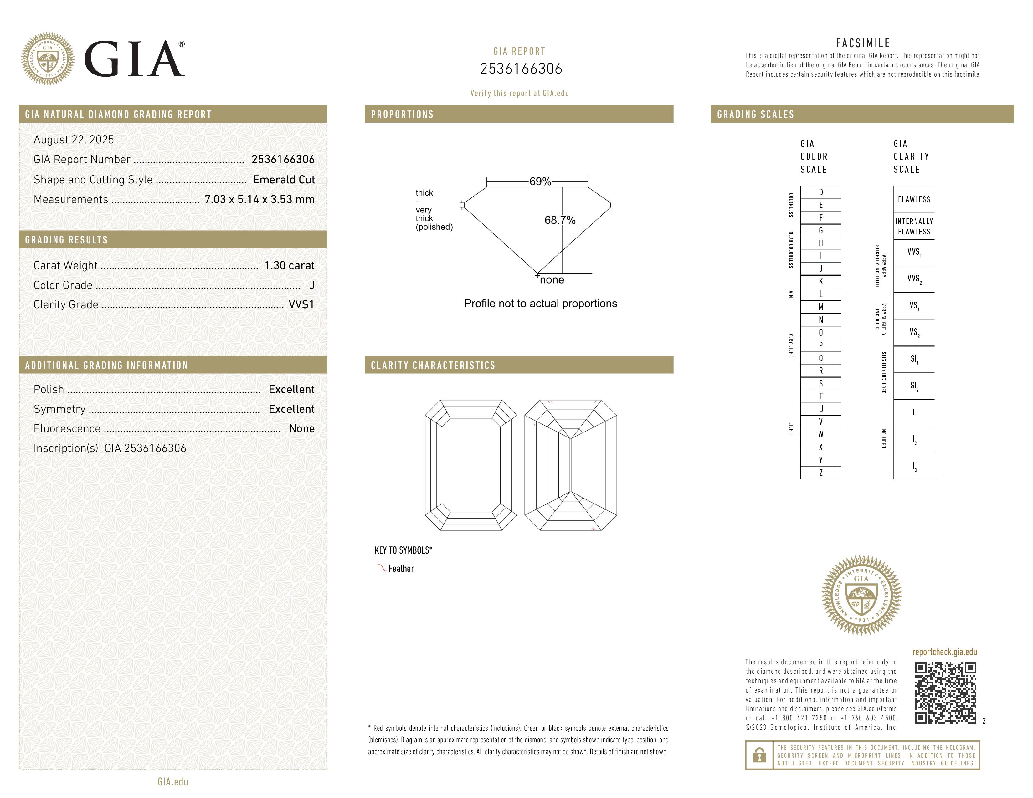 (VVS1) This diamond has very, very small inclusions. The minute inclusions are difficult for even a trained grader to see under 30x magnification. VVS1 graded diamonds are very rare.