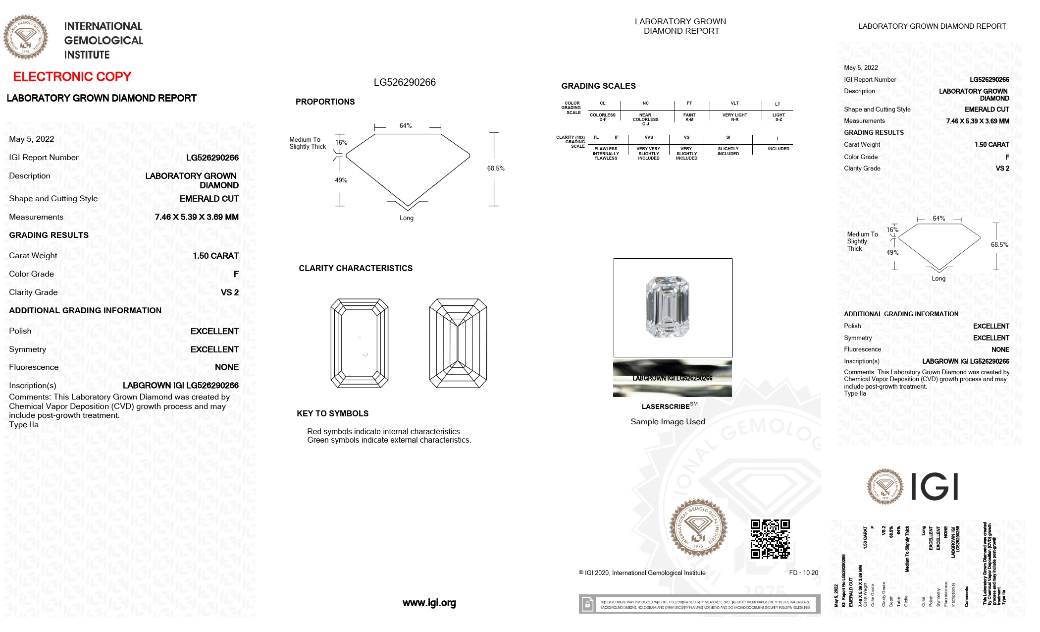 1.50 Carat - Emerald Cut Lab Grown Diamond