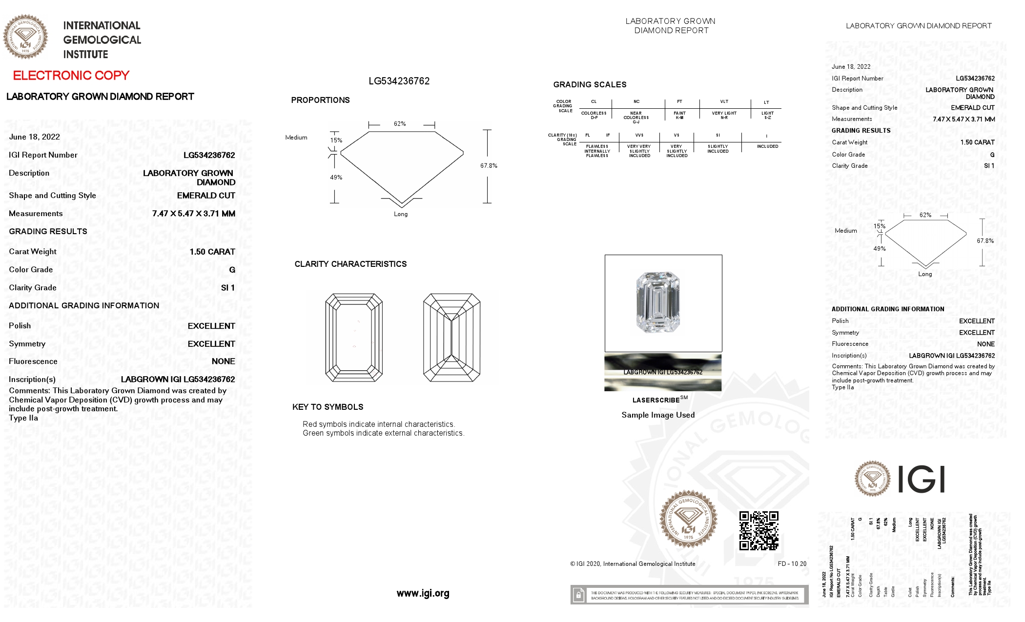 1.50 Carat - Emerald Cut Lab Grown Diamond