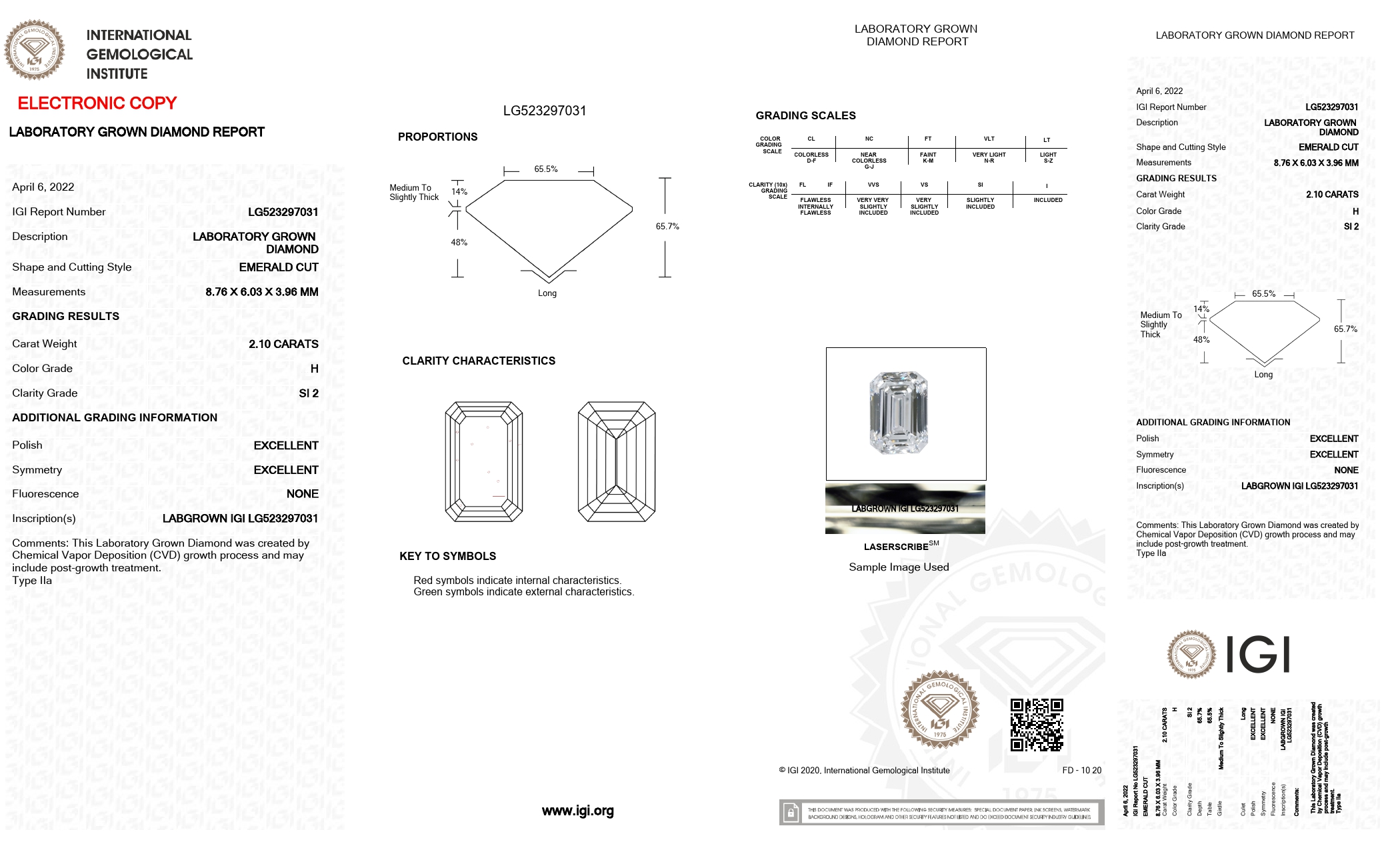 2.10 Carat - Emerald Cut Lab Grown Diamond