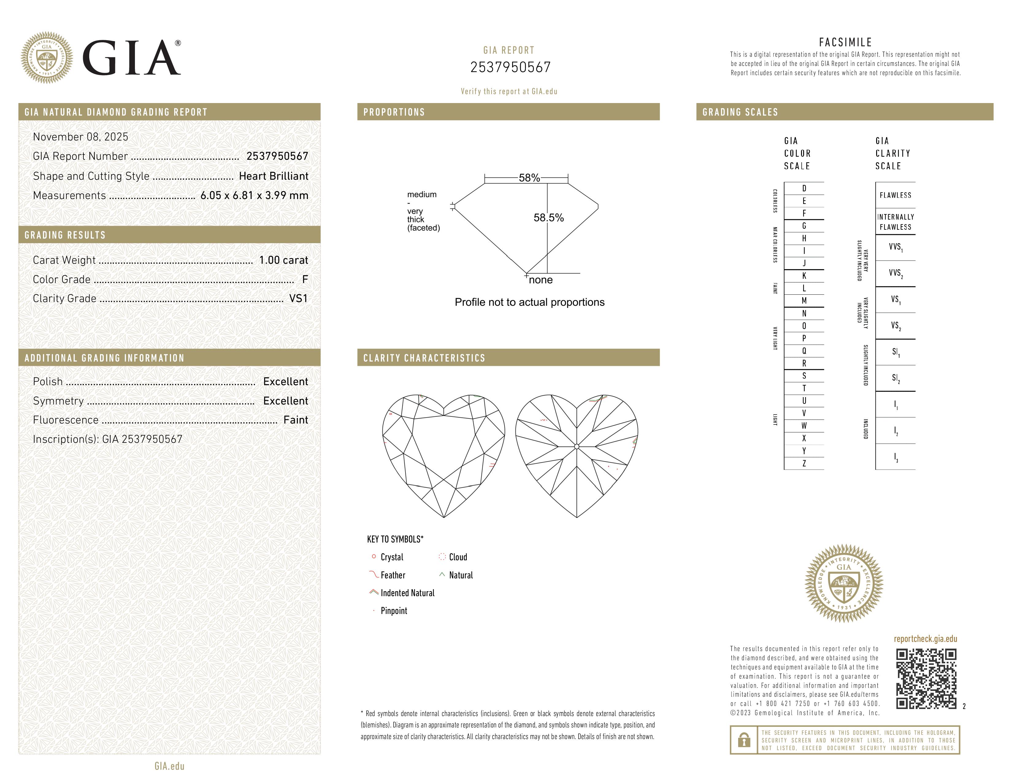 (VS1) This diamond contains very, few inclusions that are difficult for the untrained eye to see under 10x magnification. VS1 diamonds have no visible blemishes and are less expensive than higher clarity grades, therefore offering exceptional value while not compromising on quality.