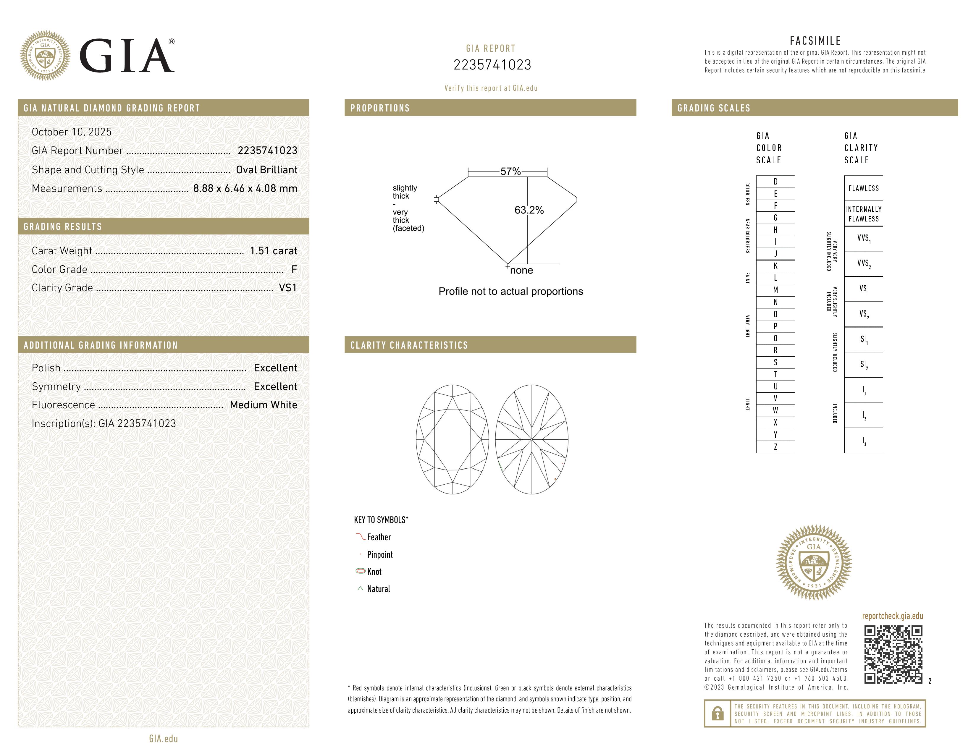 (VS1) This diamond contains very, few inclusions that are difficult for the untrained eye to see under 10x magnification. VS1 diamonds have no visible blemishes and are less expensive than higher clarity grades, therefore offering exceptional value while not compromising on quality.