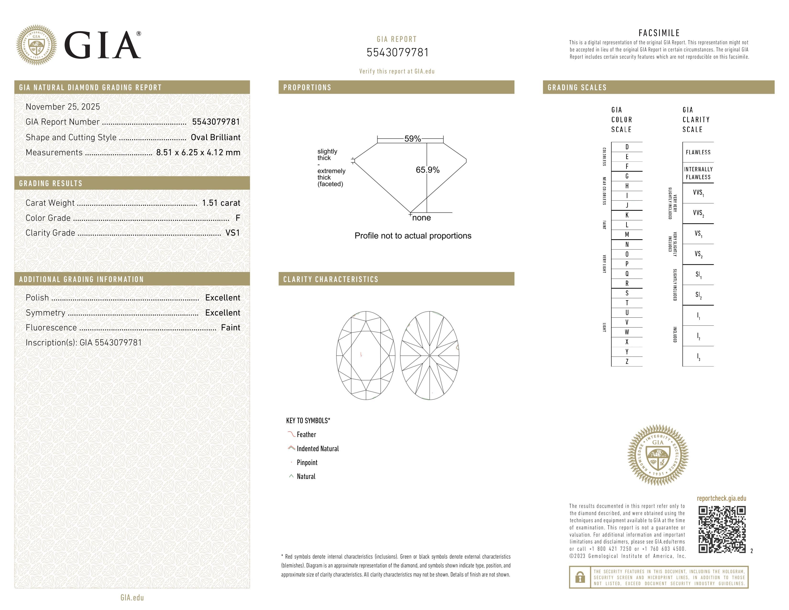 (VS1) This diamond contains very, few inclusions that are difficult for the untrained eye to see under 10x magnification. VS1 diamonds have no visible blemishes and are less expensive than higher clarity grades, therefore offering exceptional value while not compromising on quality.