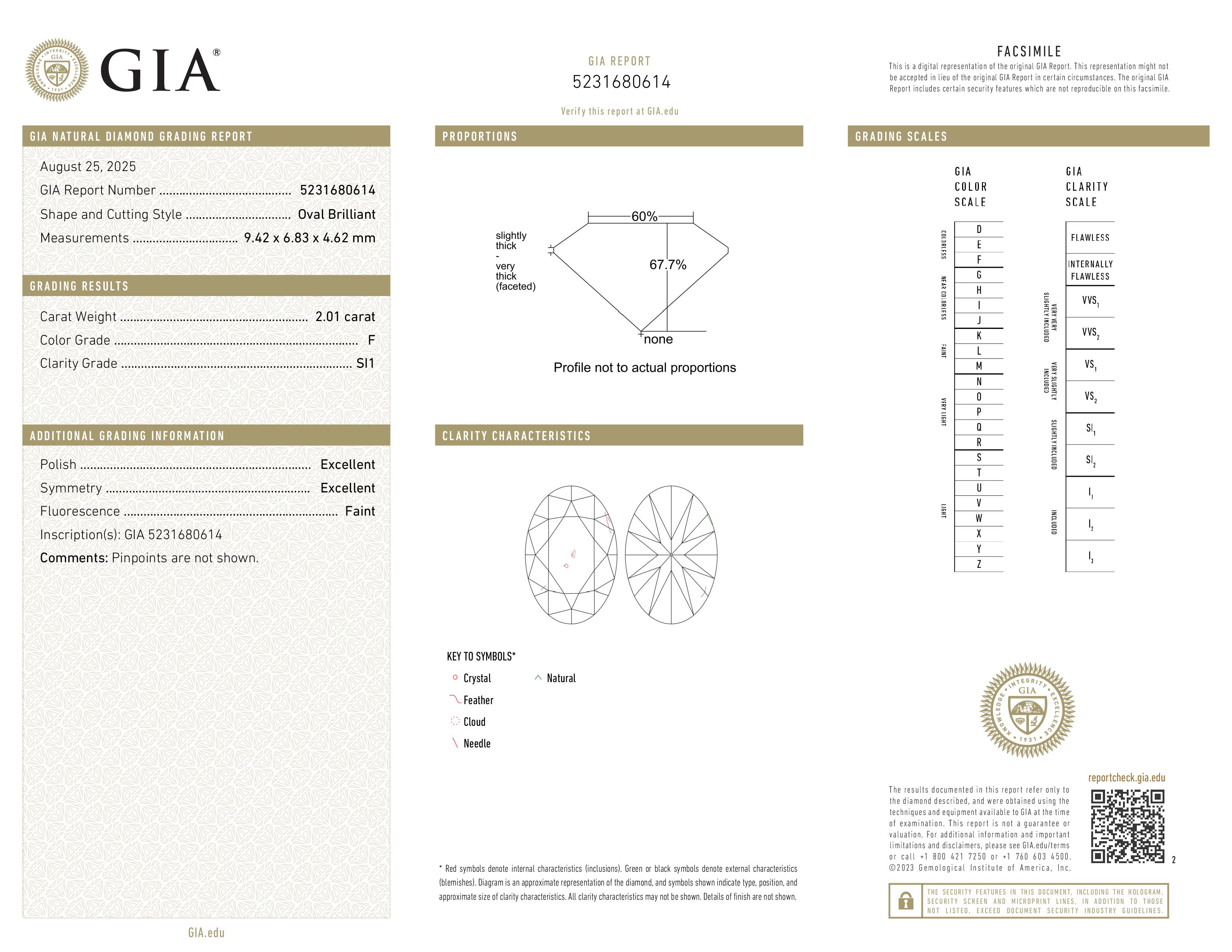 (SI1) This diamond contains few inclusions detectable using 10x magnification. However, when the diamond is set in jewelry, these inclusions are not usually visible to the naked eye. The SI1 graded diamonds are less expensive then higher clarity graded and therefore offer exceptional value for those that want to stay within budget and get a larger diamond. If you're unsure and want our opinion, just let us know and one of our gemologists will review it for you.