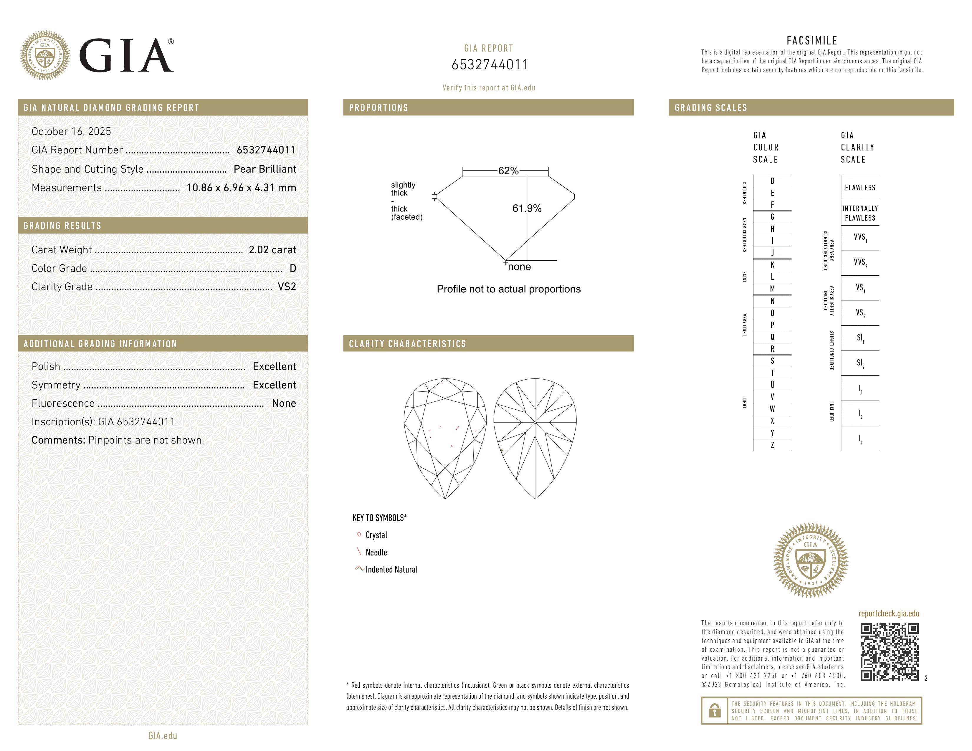 (VS2) Most people find this to be the sweet spot. This diamond contains very, few inclusions that are difficult for the untrained eye to see under 10x magnification. VS2 diamonds have no visible blemishes and are less expensive than higher clarity grades, therefore offering exceptional value while not compromising on quality.