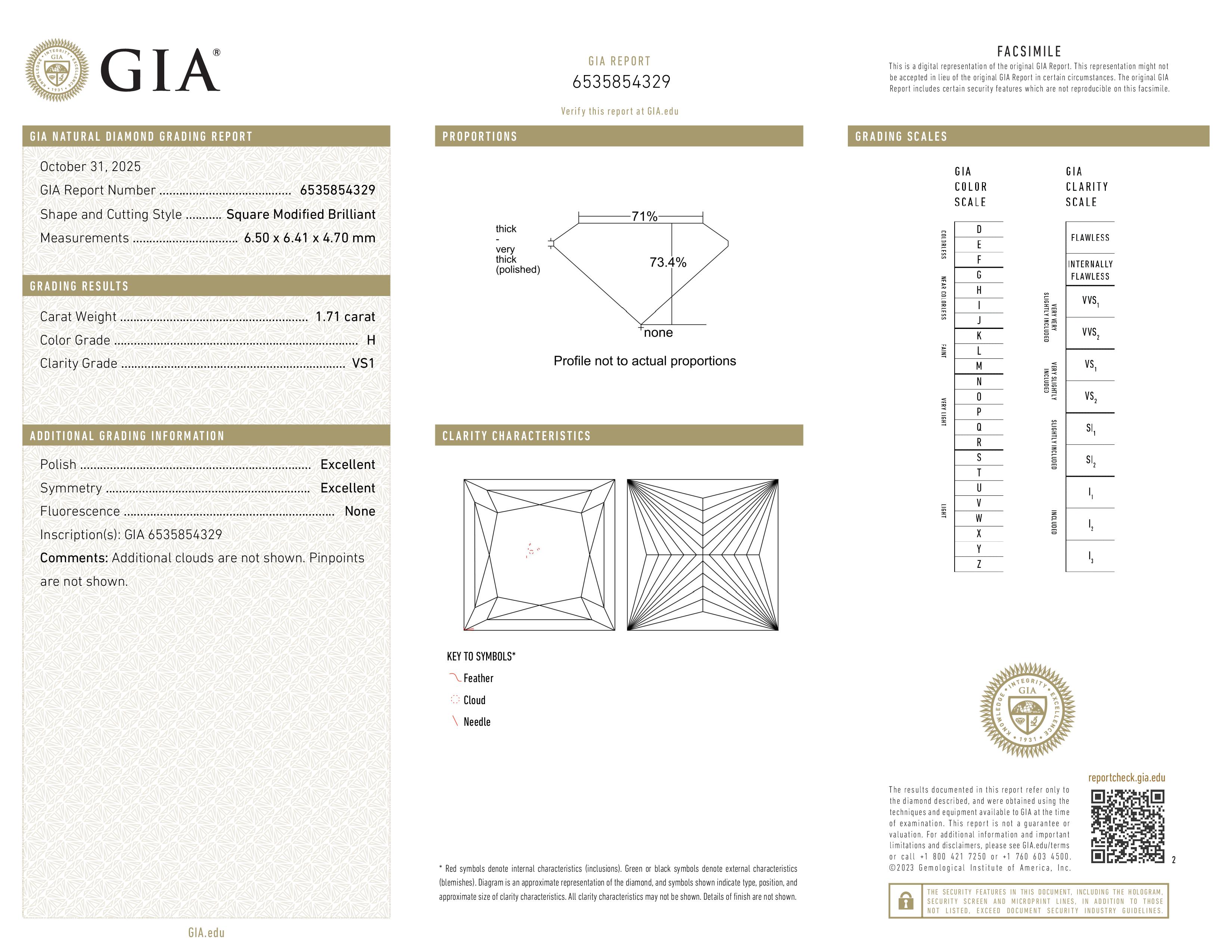 (VS1) This diamond contains very, few inclusions that are difficult for the untrained eye to see under 10x magnification. VS1 diamonds have no visible blemishes and are less expensive than higher clarity grades, therefore offering exceptional value while not compromising on quality.