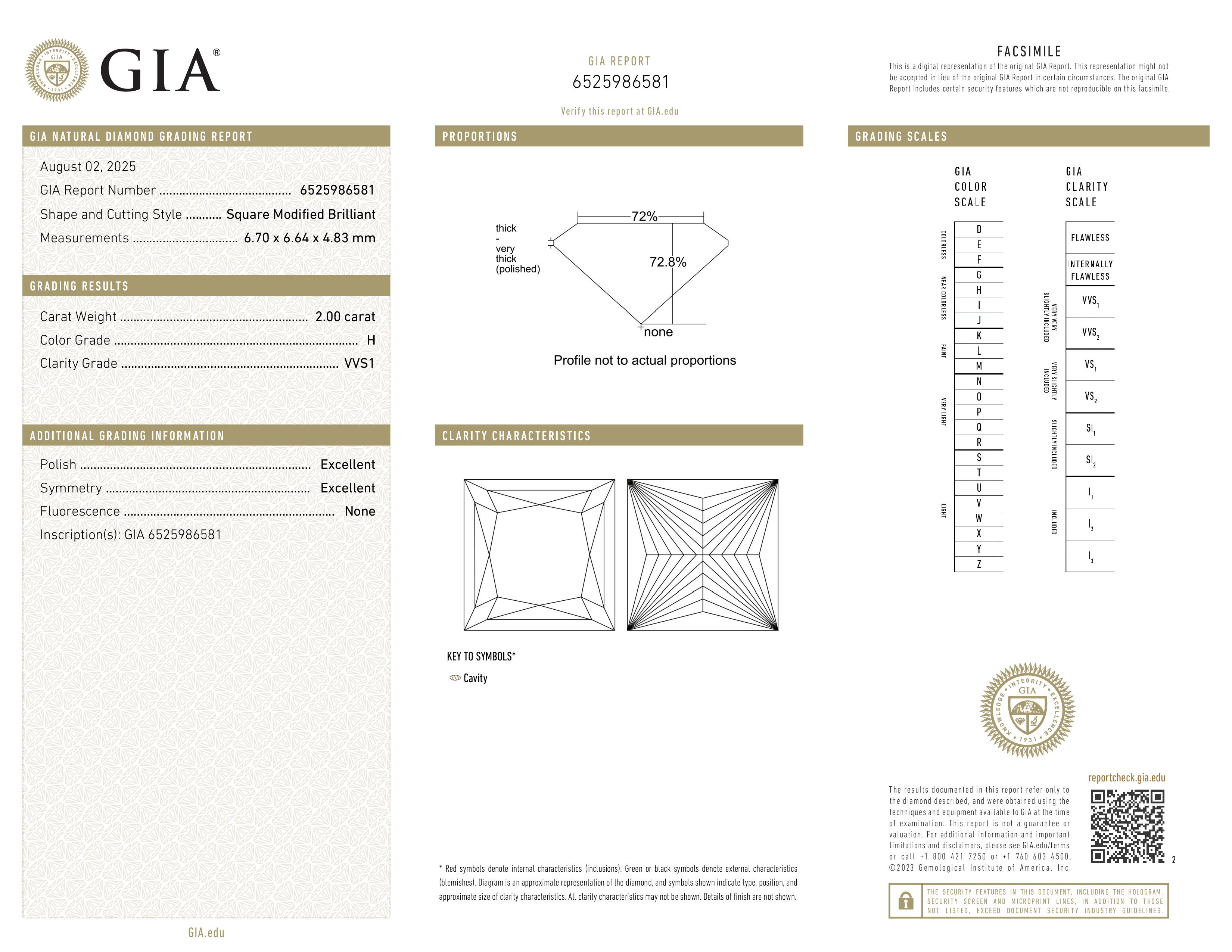 (VVS1) This diamond has very, very small inclusions. The minute inclusions are difficult for even a trained grader to see under 30x magnification. VVS1 graded diamonds are very rare.