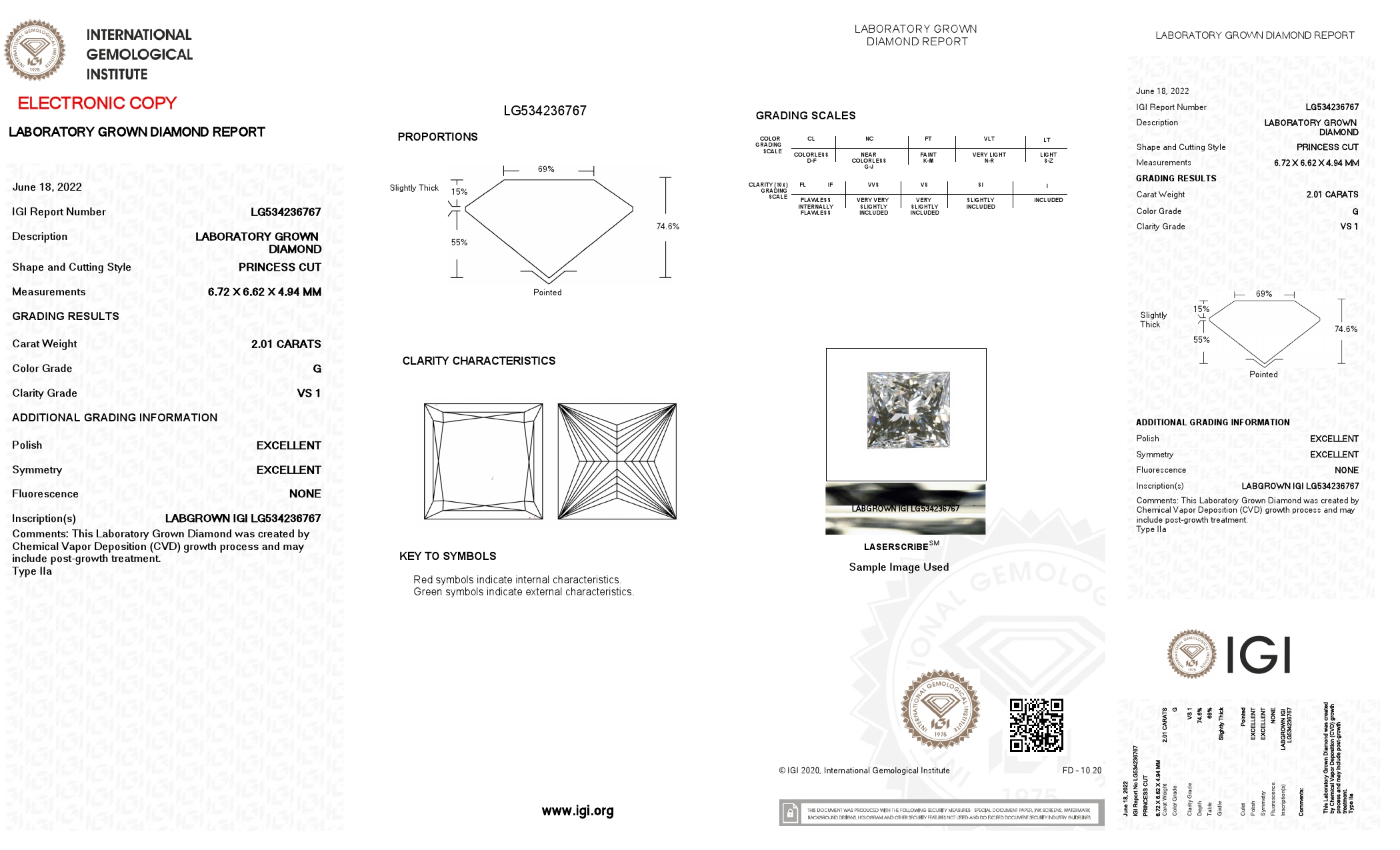 2.01 Carat - Princess Cut Lab Grown Diamond