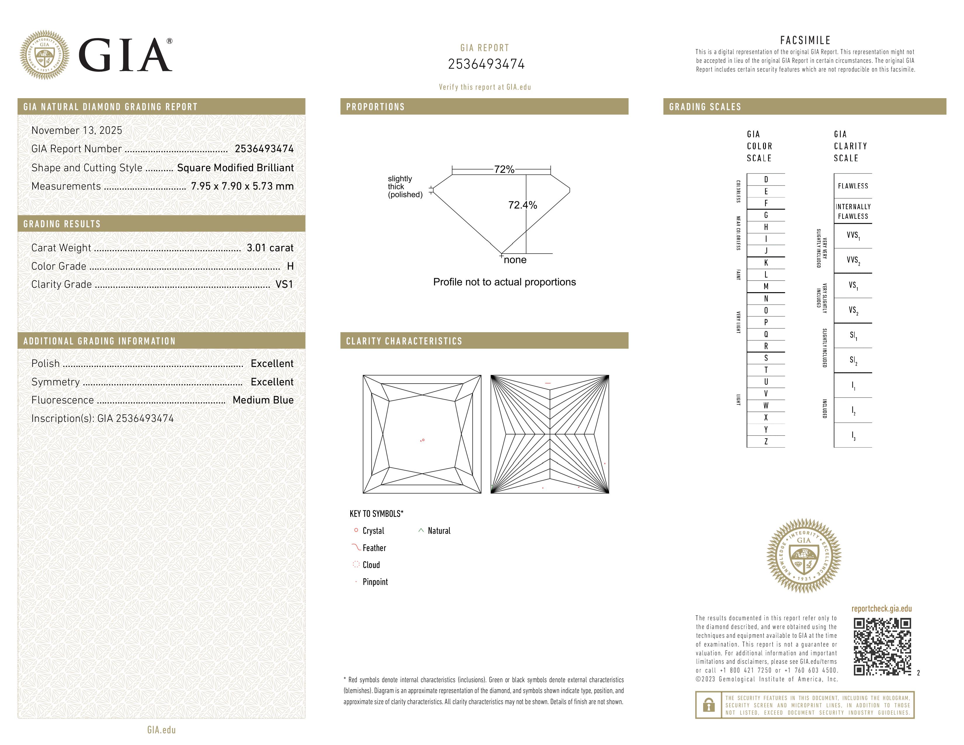 (VS1) This diamond contains very, few inclusions that are difficult for the untrained eye to see under 10x magnification. VS1 diamonds have no visible blemishes and are less expensive than higher clarity grades, therefore offering exceptional value while not compromising on quality.