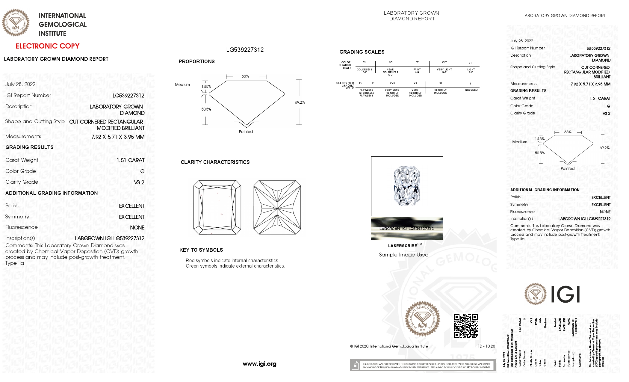 1.51 Carat - Radiant Cut Lab Grown Diamond