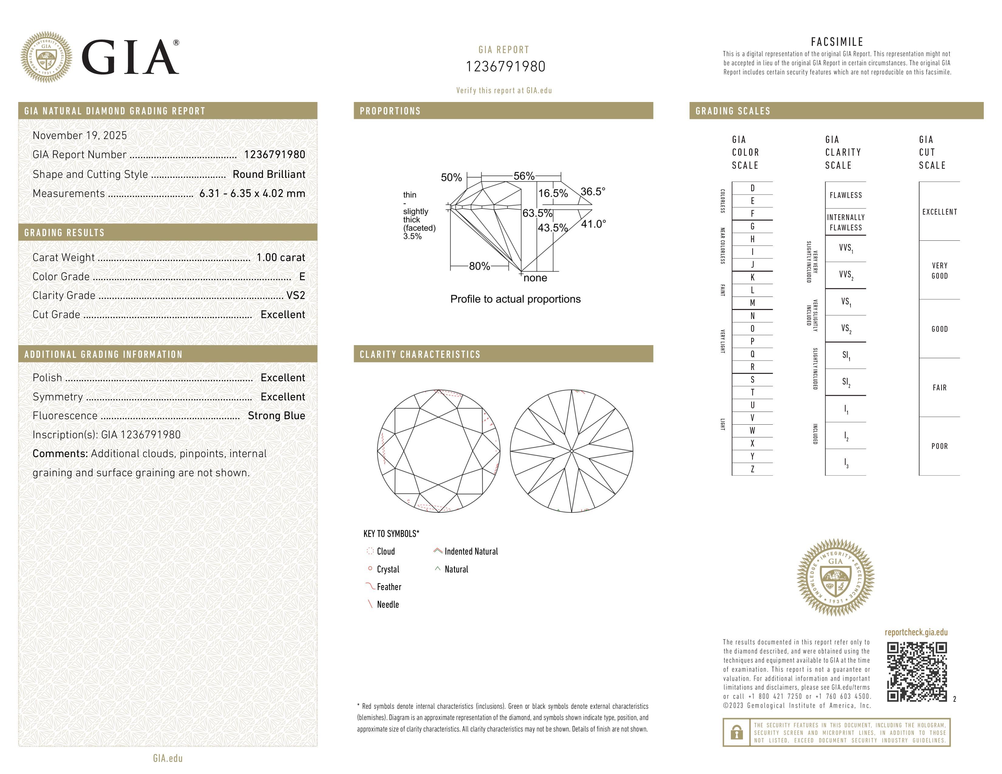(Excellent) This diamond is cut to the highest standards determined by grading laboratories. Reflecting virtually all the light that enters, this diamond was cut to maximize brilliance and sparkle. Excellent cuts are exceptionally fine and rare and have ideal proportions and finish characteristics.