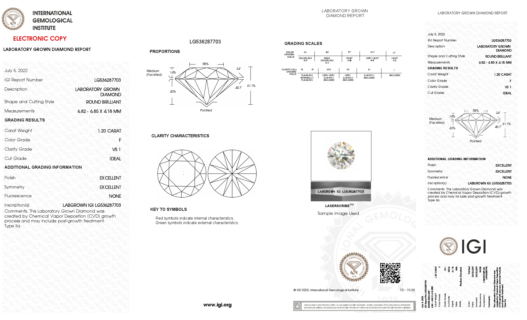 (VS1) This diamond contains very, few inclusions that are difficult for the untrained eye to see under 10x magnification. VS1 diamonds have no visible blemishes and are less expensive than higher clarity grades, therefore offering exceptional value while not compromising on quality.
