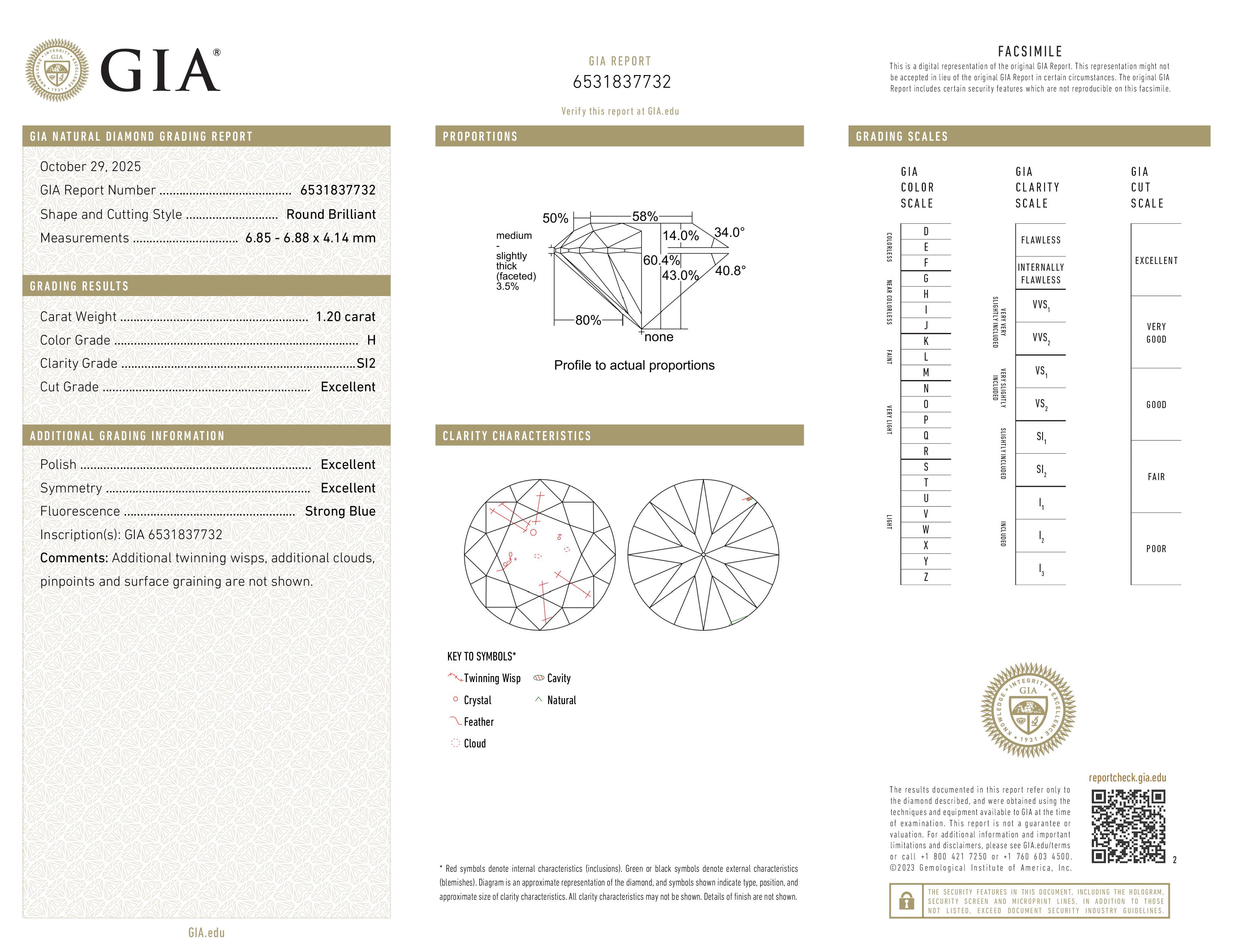 H Color | SI2 Clarity | Excellent Cut