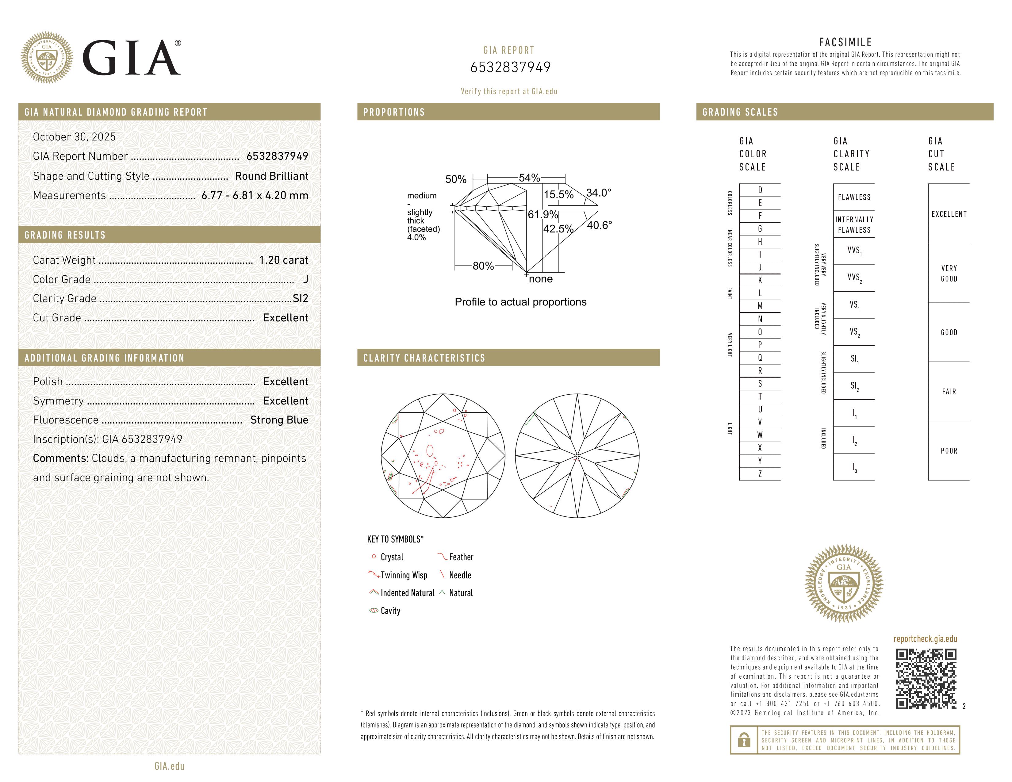 (Excellent) This diamond is cut to the highest standards determined by grading laboratories. Reflecting virtually all the light that enters, this diamond was cut to maximize brilliance and sparkle. Excellent cuts are exceptionally fine and rare and have ideal proportions and finish characteristics.