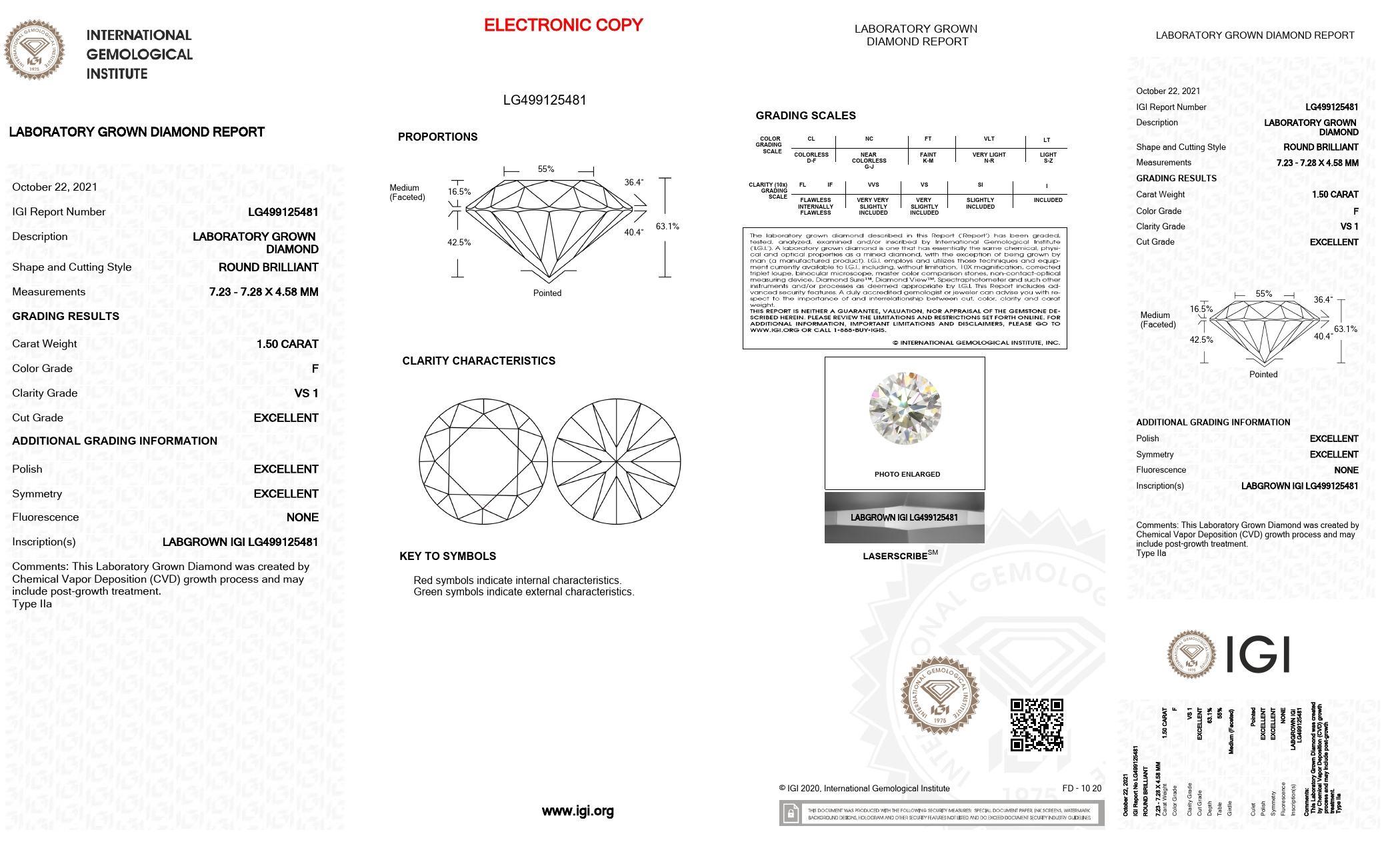 (Excellent) This diamond is cut to the highest standards determined by grading laboratories. Reflecting virtually all the light that enters, this diamond was cut to maximize brilliance and sparkle. Excellent cuts are exceptionally fine and rare and have ideal proportions and finish characteristics.