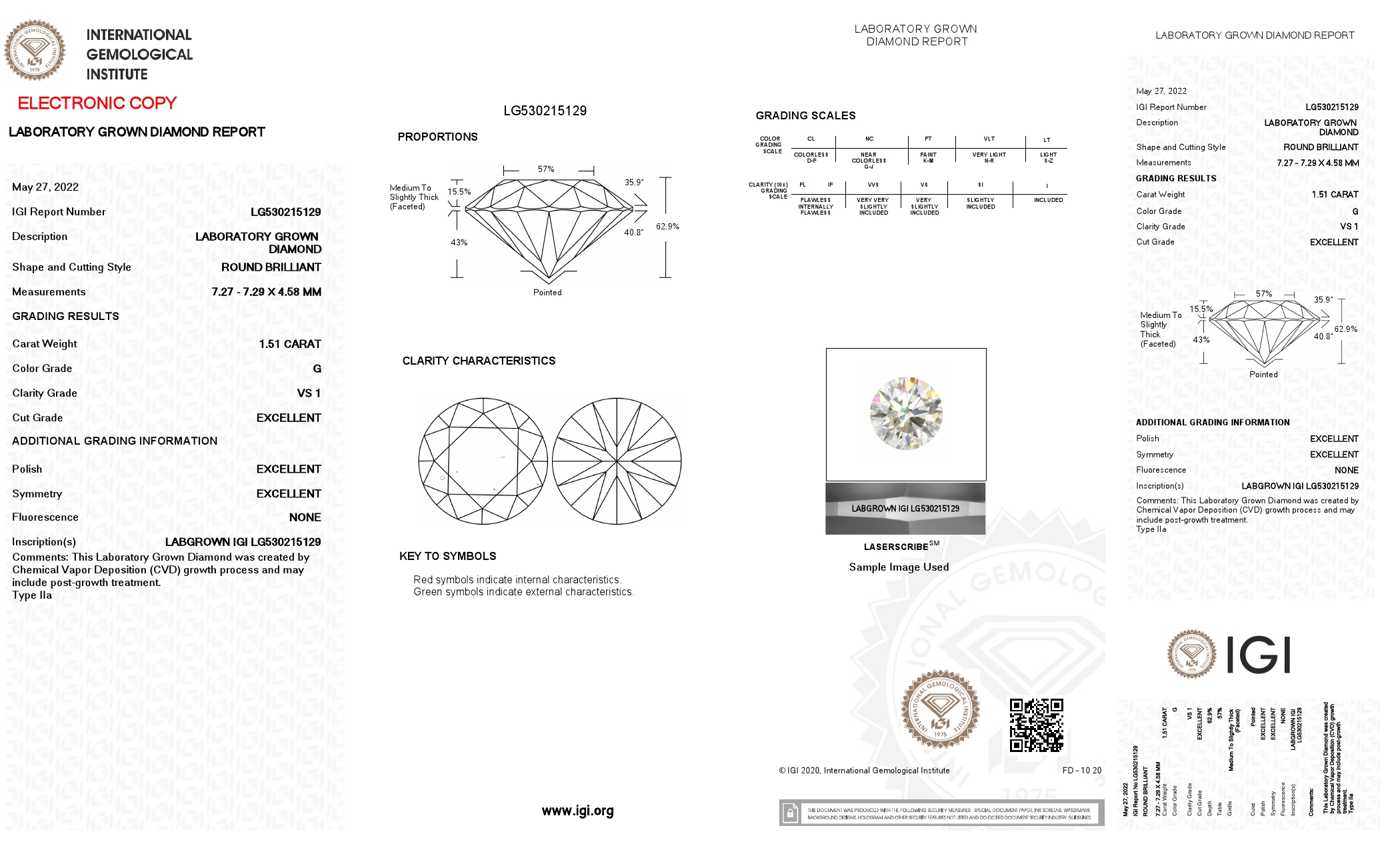 (VS1) This diamond contains very, few inclusions that are difficult for the untrained eye to see under 10x magnification. VS1 diamonds have no visible blemishes and are less expensive than higher clarity grades, therefore offering exceptional value while not compromising on quality.