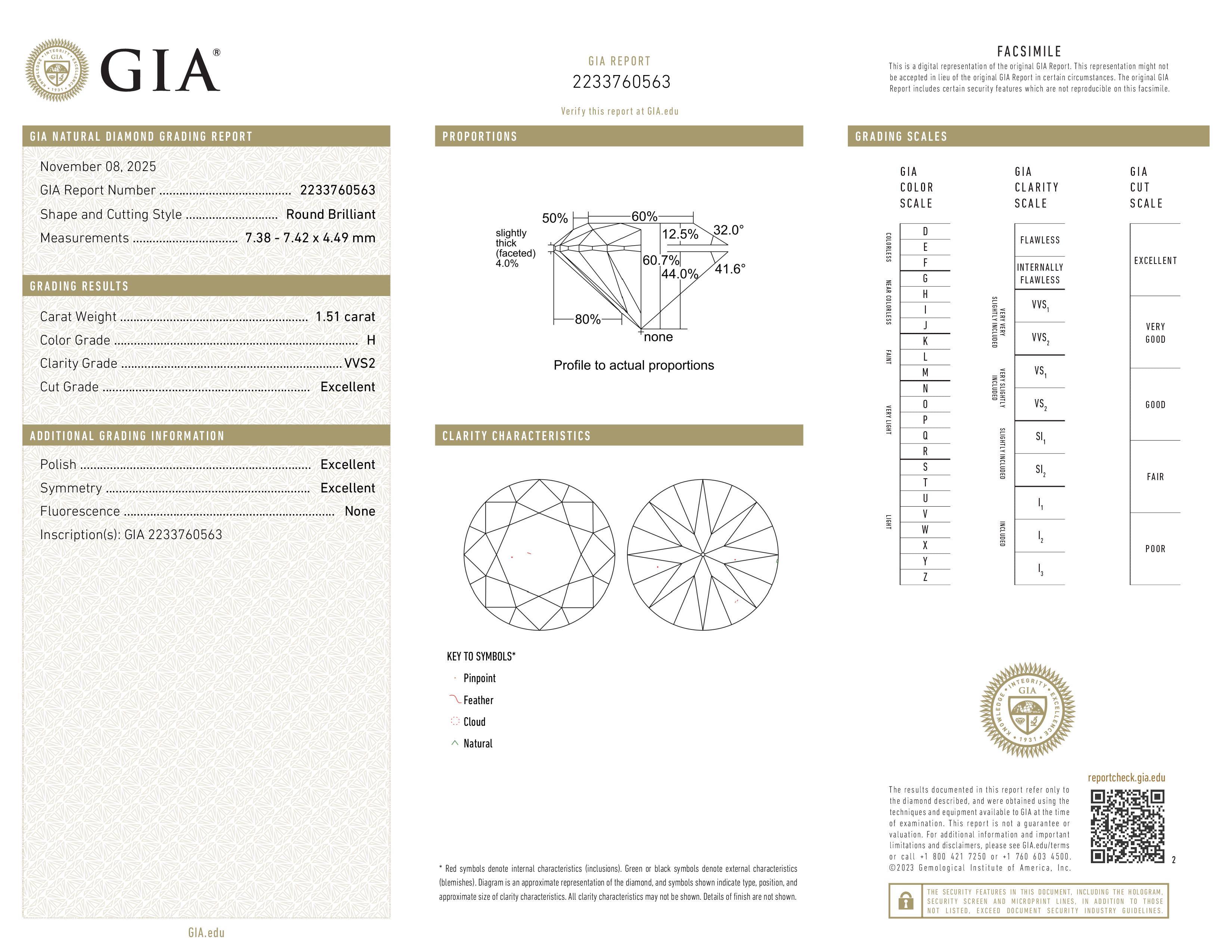 (VVS2) This diamond has very, very small inclusions. The minute inclusions are difficult for even a trained grader to see under 30x magnification. VVS2 graded diamonds are very rare.