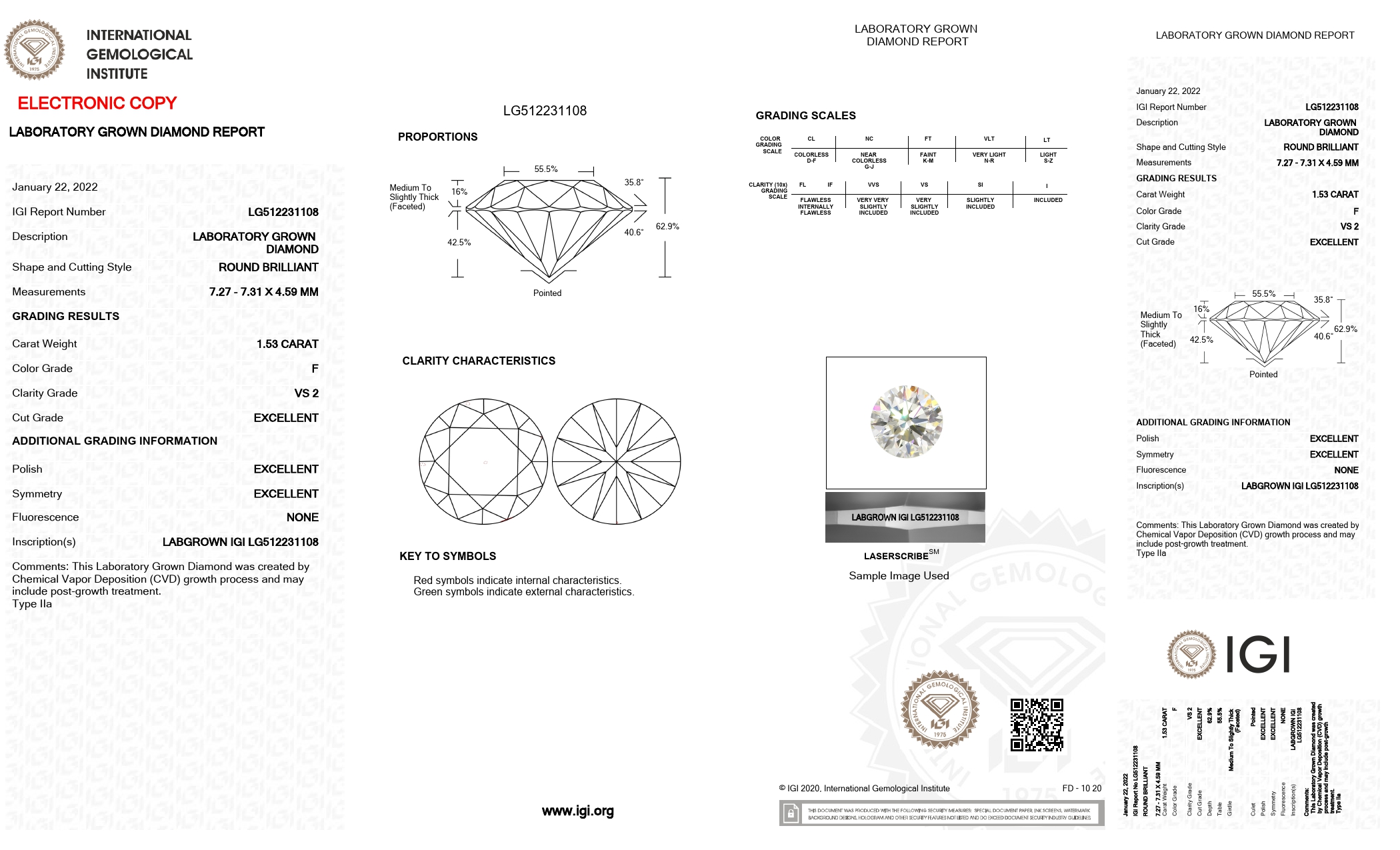 1.53 Carat - Round Cut Lab Grown Diamond