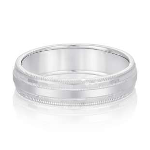 BEVELED EDGE MILGRAIN LAYER WEDDING RING in 14K White Gold