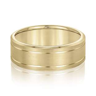 BRUSHED FINISHED DOUBLE HIGH POLISHED ACCENT WEDDING RING in 18K Yellow Gold