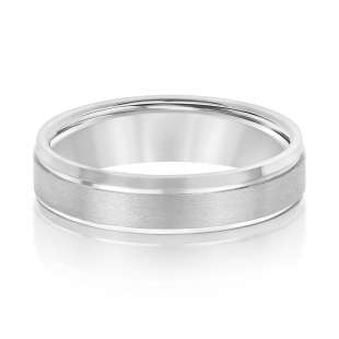 BRUSHED FINISHED INLAY WEDDING RING in 18K White Gold