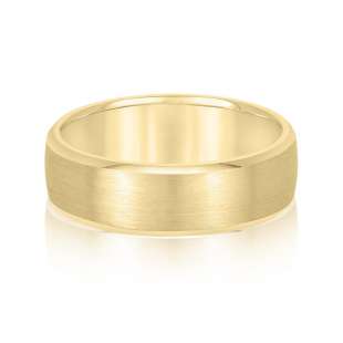 BRUSHED FINISHED POLISHED EDGE WEDDING RING in 18K Yellow Gold