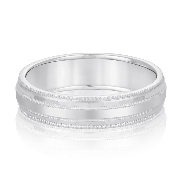 BRUSHED INLAY WITH POLISHED EDGE WEDDING BAND in 14K White Gold