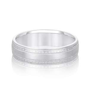 FANCY DETAILED MATTE FINISHED WEDDING RING in 18K White Gold