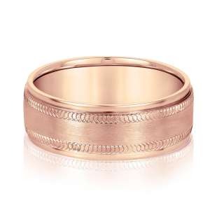 Elegant satin finished inlay wedding band with fine etch detailed and high polished beveled edges. FREE engraving is available. Simply enter your preferred text (up to 20 characters) in the additional instructions box at checkout. Your engraving will be inscribed on the inside of your band.