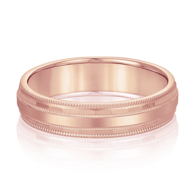 LIGHT HAMMERED MILGRAIN BEVELED EDGE WEDDING RING in Rose Gold
