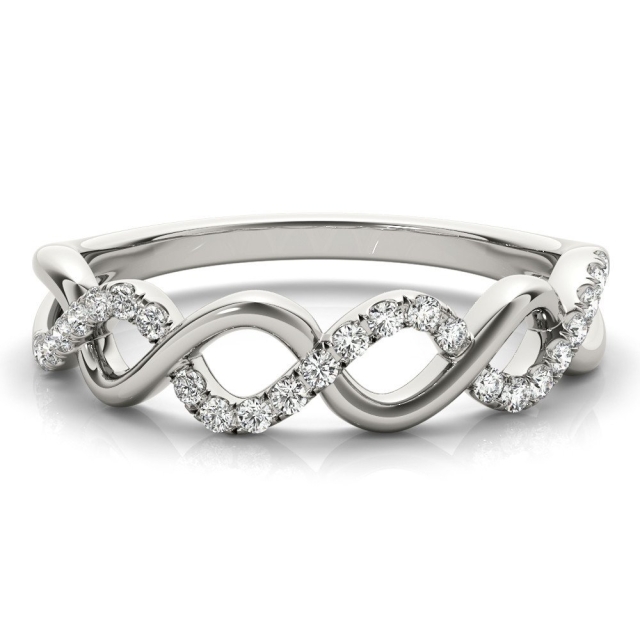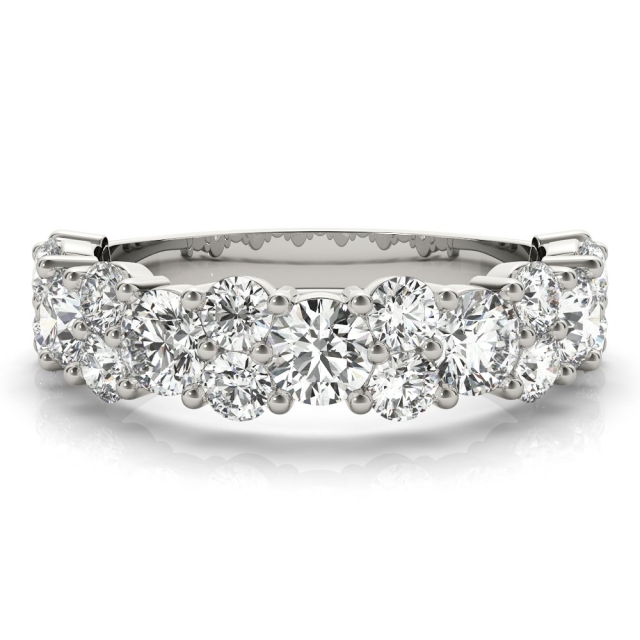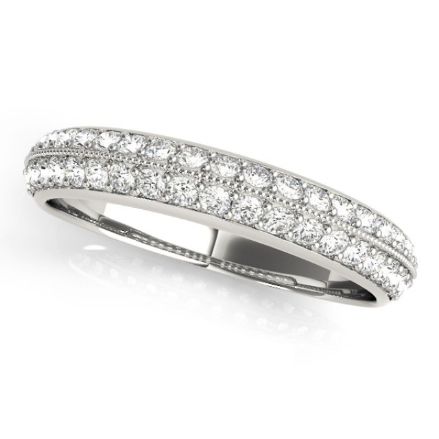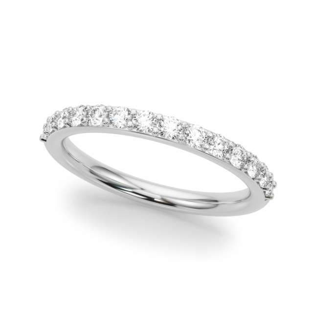 This is your perfect classic pave-set wedding band with round brilliant diamonds 3/4 way around. This is the exact match to the Eliana Diamond Engagement Ring, but you can stack this with almost any engagement ring to complete your set. Also available in an eternity version with diamonds going all the way around.
