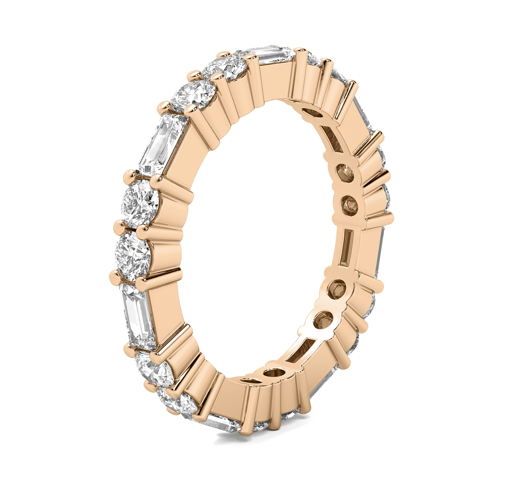 DOUBLE ROUND AND BAGUETTE ETERNITY BAND in Rose Gold