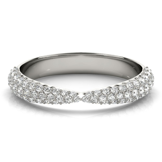 This is a classic diamond wedding band features continuous round brilliant diamonds in an enduring fishtail setting detailed.