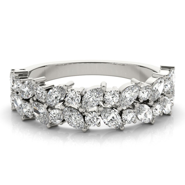 Double row of diamonds set in a micro-pave setting, feautring knife edge design between the diamond rows. The shank is smooth.