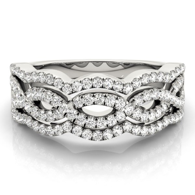 Introducing our Women's Milgrain Twisted Diamond Wedding Band. This elegant band features a twisted design adorned with intricate milgrain detailing and sparkling diamonds, blending vintage charm with modern sophistication. Elevate your style with this exquisite accessory, perfect for symbolizing your enduring love and commitment. Available in your choice of Metal: Platinum, White Gold, Yellow Gold, and Rose Gold.