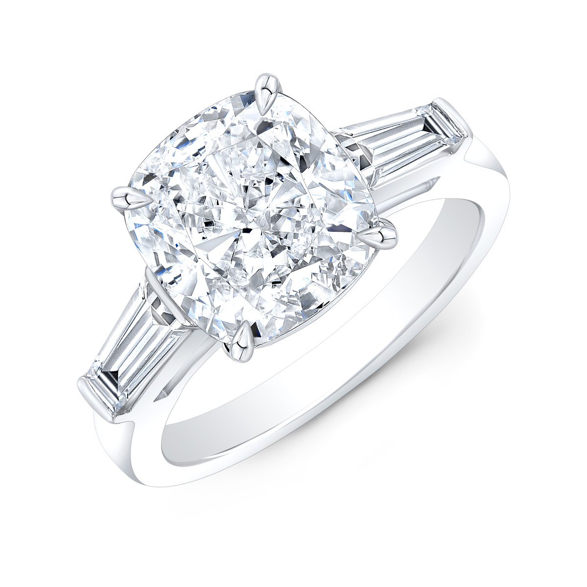 This is a custom ring for Chris Urso with two side baguettes just like the reference photos.