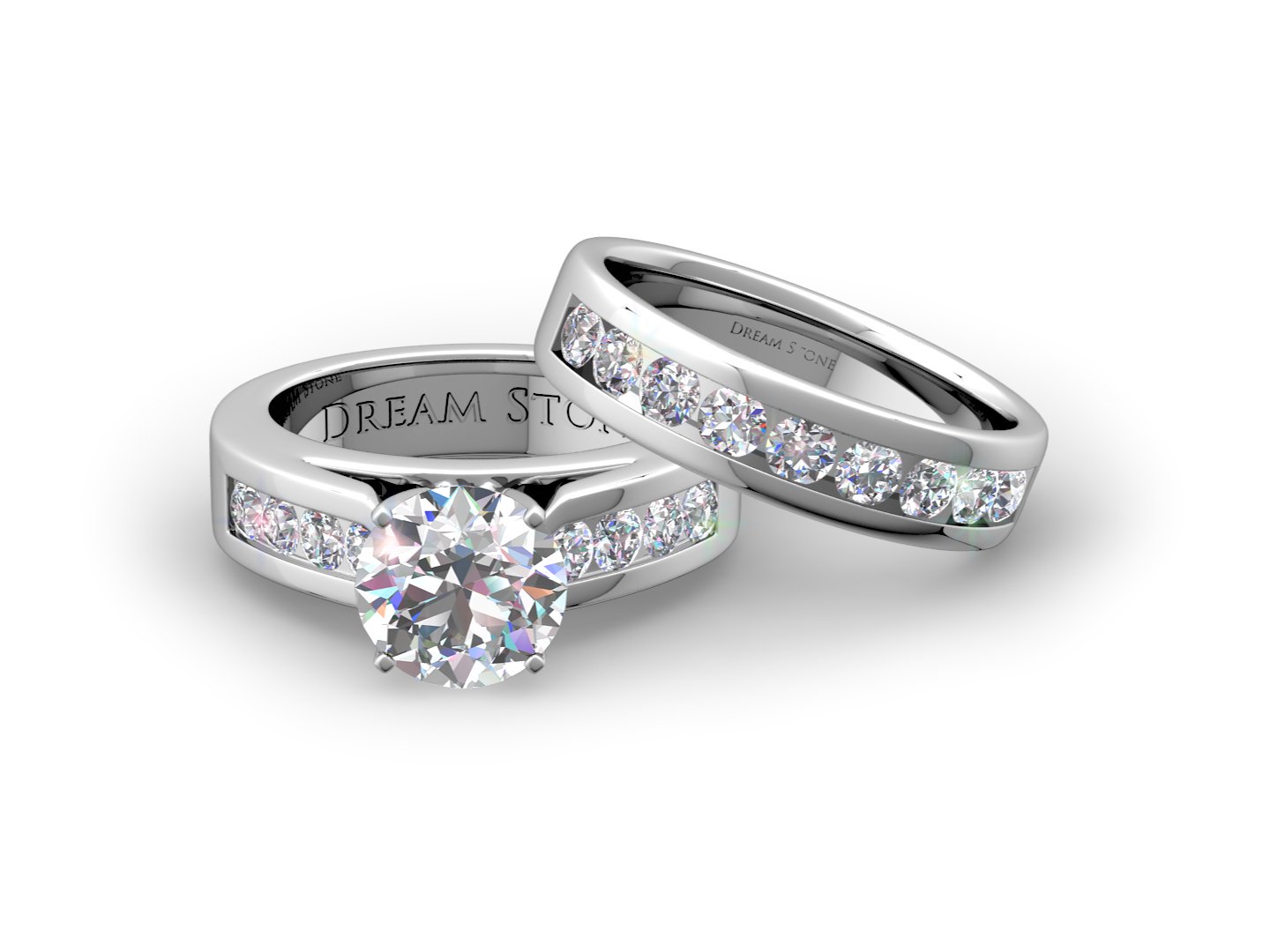 This 9 Stones channel-set diamonds wedding ring is the matching band for our DS2805, and offers the same ideal brilliance and fire. Each diamond is 10 pointers, a total diamond weight of 0.90 in carat weight.