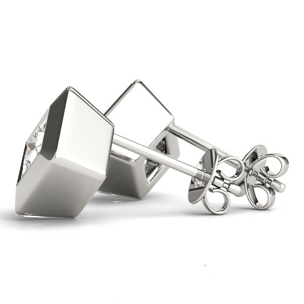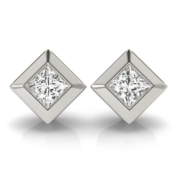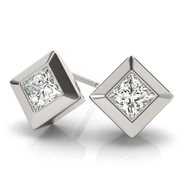 BEZEL PRINCESS-CUT DIAMOND EARRINGS (MOUNTING) in 14K White Gold