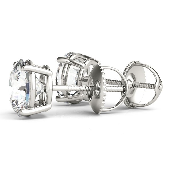This is a classic four prong basket setting to secure your round diamond pair. Featured with comfortable posts and threaded backings. Available with guardian lock backings and push backings. Complete with your choice of metal and diamond pair.