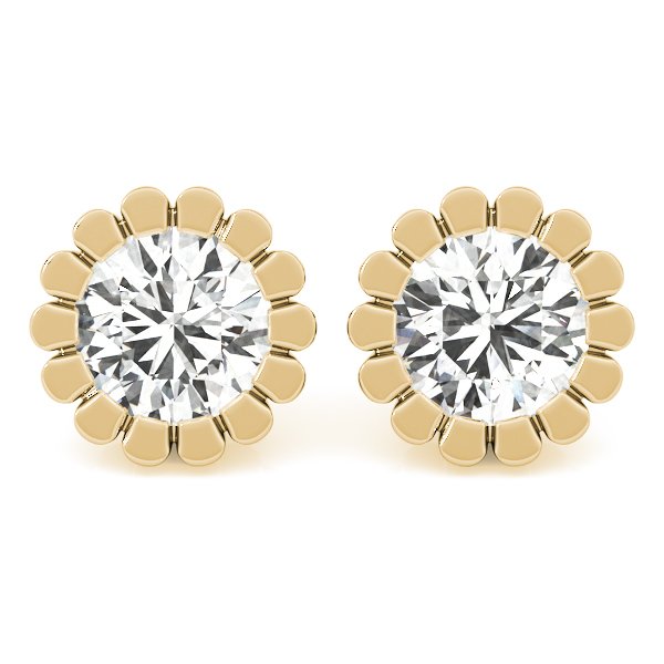 This is a bezel style flower backing to secure your diamond studs. These mountings will have the diamonds sit flush with your earlobe. Available with guardian lock backings (also known as la pousette), thread backings, and push backings. Complete with your choice of metal and diamond pair.
