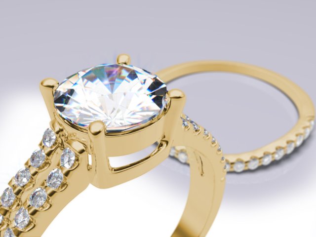 BRILLIANT CUT SPLIT SHANK DIAMOND ENGAGEMENT RING WITH MATCHING BAND in 18K Yellow Gold